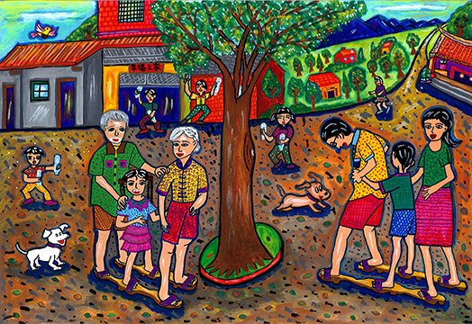 現在,夜裡一寫完功課,有些時候也會和奶奶一起早早躺下。剛睡下就愛纏著奶奶說故事。奶奶就講起她從小聽來的老故事,什麼嫦娥姐姐偷吃靈藥飛上了天,九天仙女下凡洗澡看中了放牛郎……。有時候也說說她小時候的事,有時一時興起,奶奶還會對著我哼上某段戲裡頭一兩句經典的唱詞,我雖然聽不明白,卻也覺得好聽,總會央求著奶奶也教我幾句。待我睡著了,奶奶還輕輕地搖著我繼續講,而我卻在夢裡追著嫦娥,一直追到了桂花樹下……