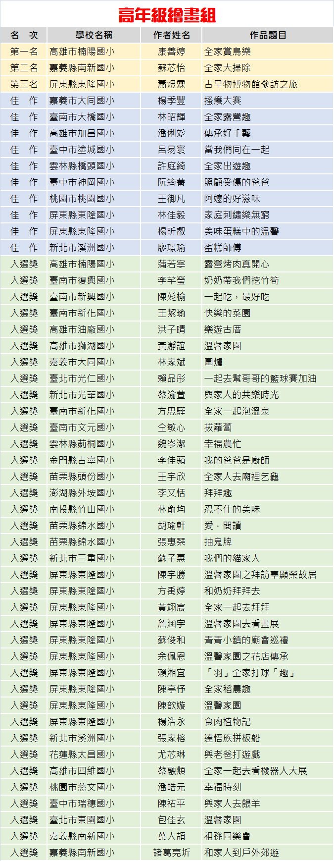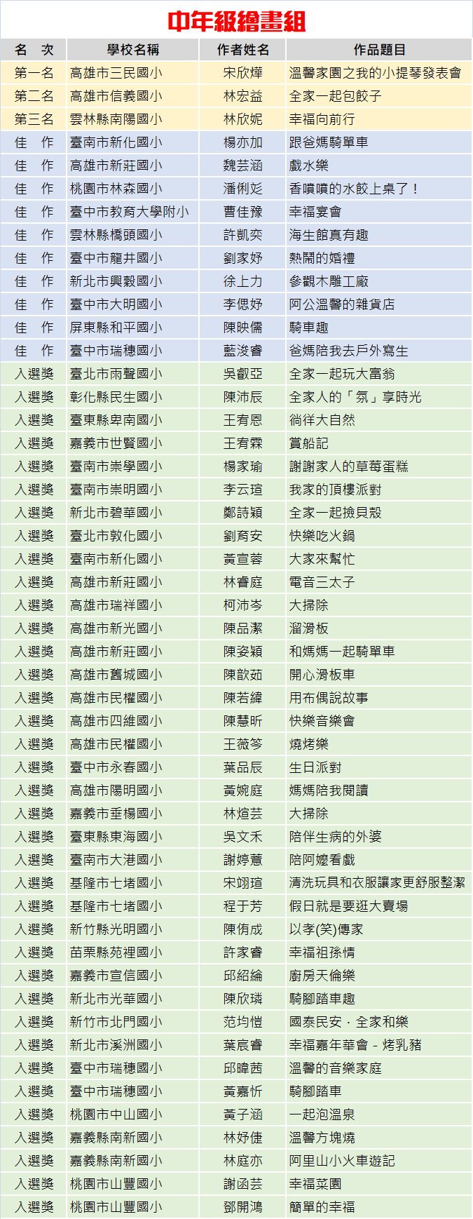 感謝所有小朋友的參與,也恭喜上述得獎同學,我們明年再見~~!