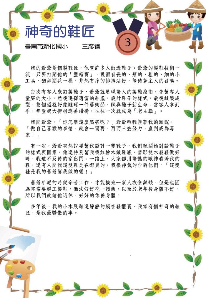 中作第三名-謝名峴