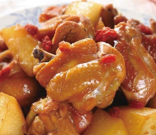 枸杞具有消除疲勞的功效。山藥是根莖類植物,含有豐富澱粉質、礦物質、纖維質、水分及消化酵素。。山藥的特殊黏液,對於人體具有保護作用,千萬別洗掉喔!雞肉含豐富蛋白質,脂肪含量低,且多為不飽和脂肪酸。由於雞腿肉烹煮前先去除附帶其上的脂肪,不僅減少熱量攝取,更可以讓菜餚清爽不油膩。