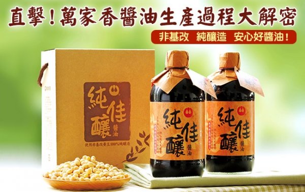 直擊! 萬家香醬油生產過程大解密 非基改 純釀造 安心好醬油! 古人云:「開門七件事,柴、米、油、鹽、醬、醋、茶」,其中「醬油」更是從古至今華人飲食中不可或缺的調味聖品之一,不論家常便飯、街頭小吃、餐廳名菜、料理的增色調味亦或是菜餚時的醃料沾醬等,都必備一瓶好的醬油。但現在食品安全問題充斥,就算是知名老牌大廠也不見得...