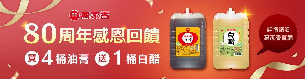 即日起,購買萬家香油膏6kg裝4桶,即贈送萬家香白醋5L裝1桶,
