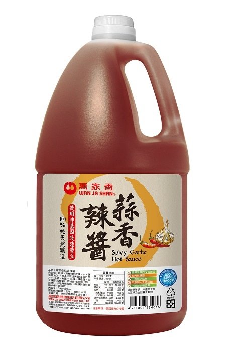 萬家香蒜香辣醬使用純釀醬油為基底,不添加防腐劑、不添加人工調味劑、不添加焦糖色素、不添加人工甘味劑。產品帶有濃濃蒜香,鮮辣爽口,誘人食慾。