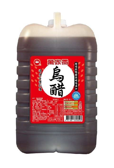 萬家香烏醋使用特級糯米釀造,使用多種辛香料,絕不添加化學原料、焦糖色素,香氣溫和不刺激,酸度適中不咬喉,是廣受台灣市場喜愛的醋品。