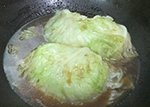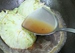 放入高麗菜,用炒菜勺子舀湯汁淋在高麗菜上數次, 蓋上鍋蓋悶煮,轉小火約10分鐘。