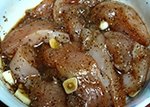 將調味料混合均勻,放入雞胸肉片拌均勻,醃約20分鐘。